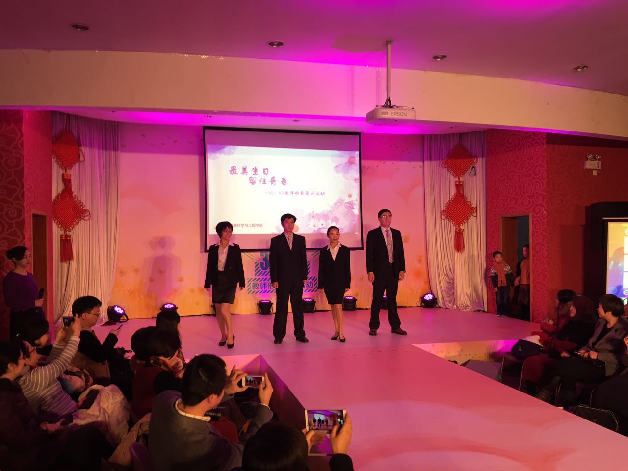 2016年12月16日下午 ,学校工会、人事处在八角亭二楼联合举办“最美生日、留住青春——30、40教师形象展示活动”。yl23411永利参加人员有:侍洪波、杜文莉、刘志鹏、万永菁、何高奇、梁莹、杨富琴、韩宇光以及30、40教师钟伟民、刘济、徐震浩、王蓓,、张见、蒋翠玲、冷春霞、常虹、朱远明、李进龙、张海腾、叶琪、付歌等20多名教师参加。其中,由经理杜文莉、副书记刘志鹏、副经理万永菁等13名教师组成的展示队代表学院进行了精彩的T台形象展示演出,先后展示了职业装、亲子装、旗袍装、运动装,伴着优美的音乐,yl23411永利代表队大气、优雅、自信的风采赢得台下一阵阵热烈的掌声,最终在全校11支参演队伍中拔得头筹,荣获“最佳展演奖”。